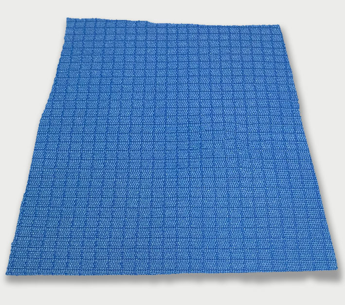 Descripción: es una tela deportiva con textura cuadriculada y propiedades Dry Fit: funciona transportando la humedad a la superficie de la prenda, facilitando su evaporación.