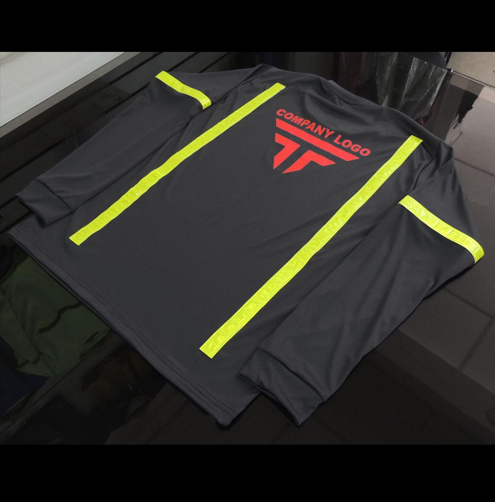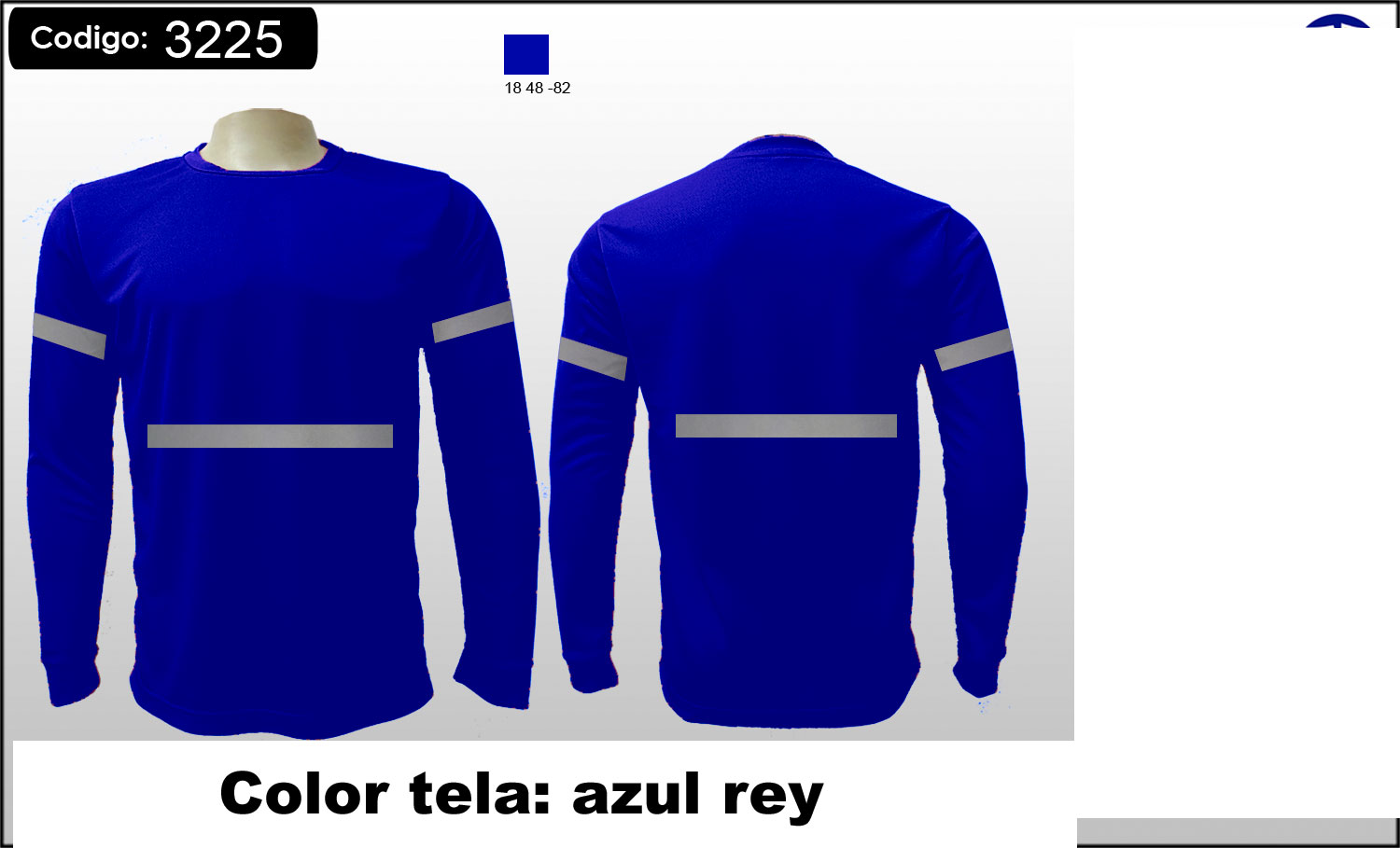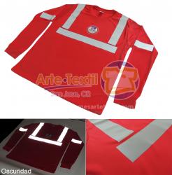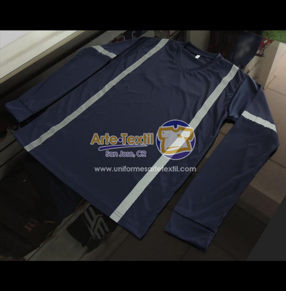 Producto código: 3225 Camiseta Dry Fit Cool Plus Azul Rey con 2 cinta reflectivas de tela cosidas Reflomax Industrial gris horizontal de 1 pulgada, masculino cosidas, manga larga - en INVENTARIO |