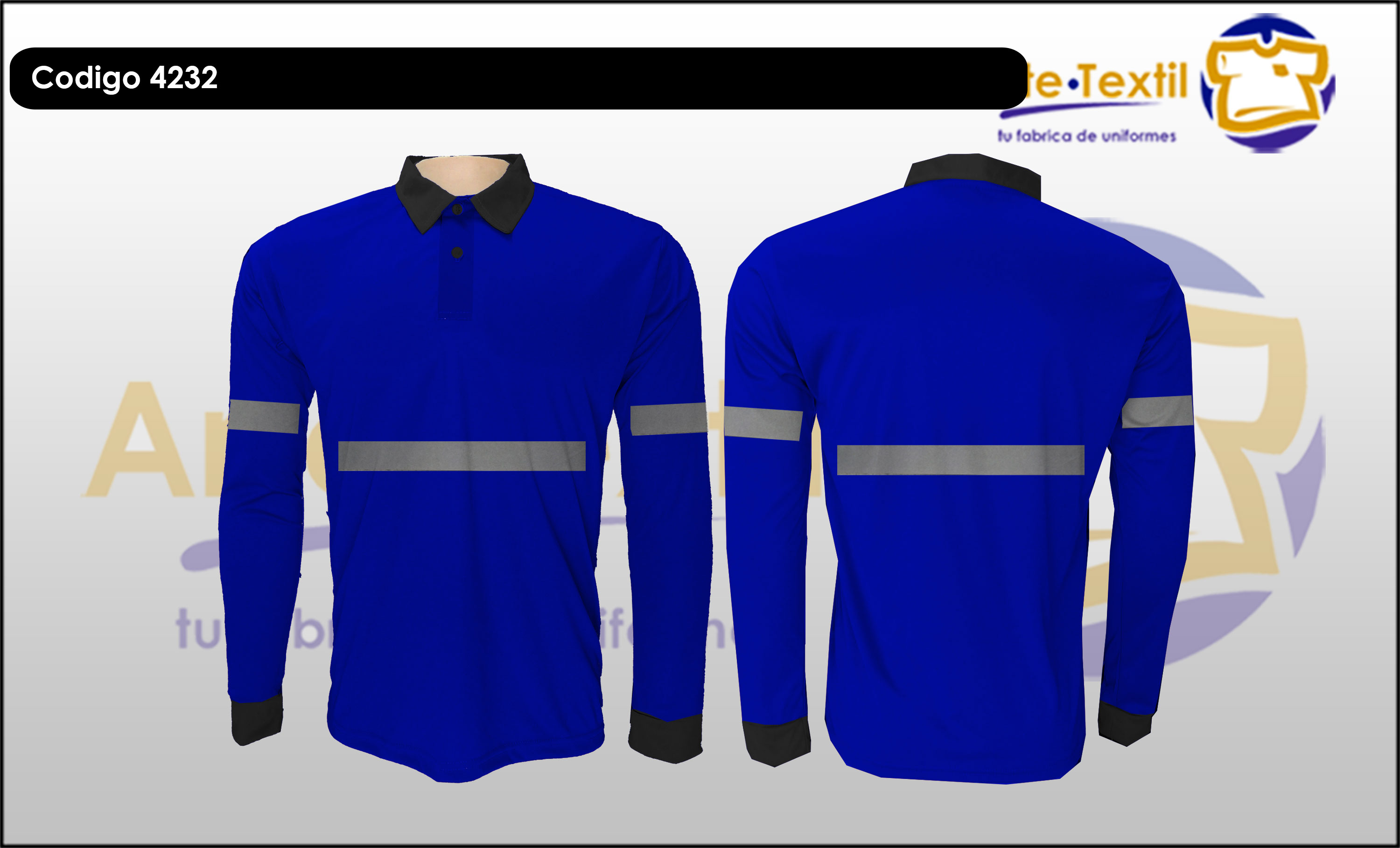 Producto código: 4232 Camisa Polo cuello de tela, tela Dry Fit Cool Plus con 2 cintas reflectivas de tela cosidas Reflomax Industrial Grises horizontal de 1 pulgada, masculino, manga larga, color azul rey - gris oscuro - EN INVENTARIO |