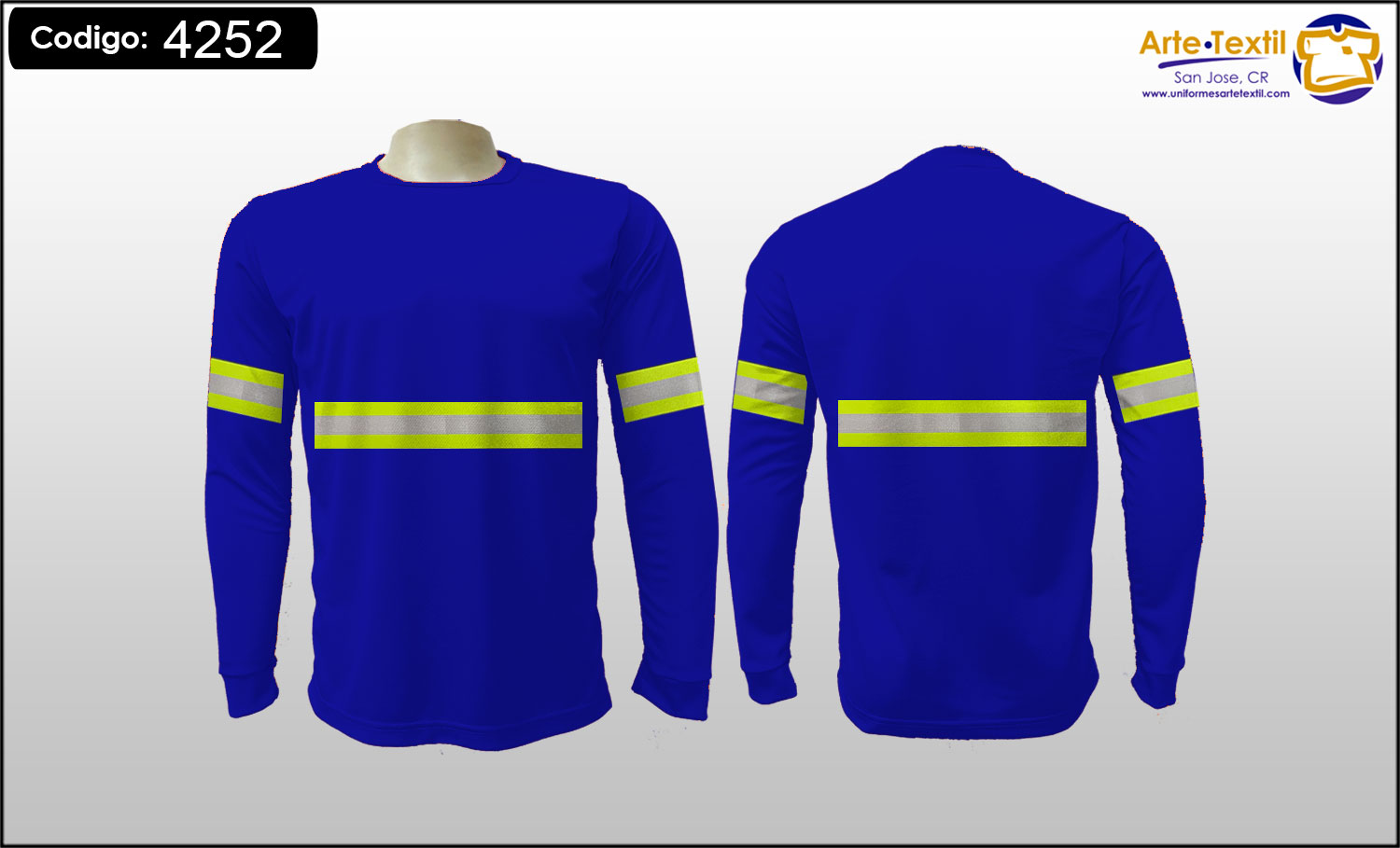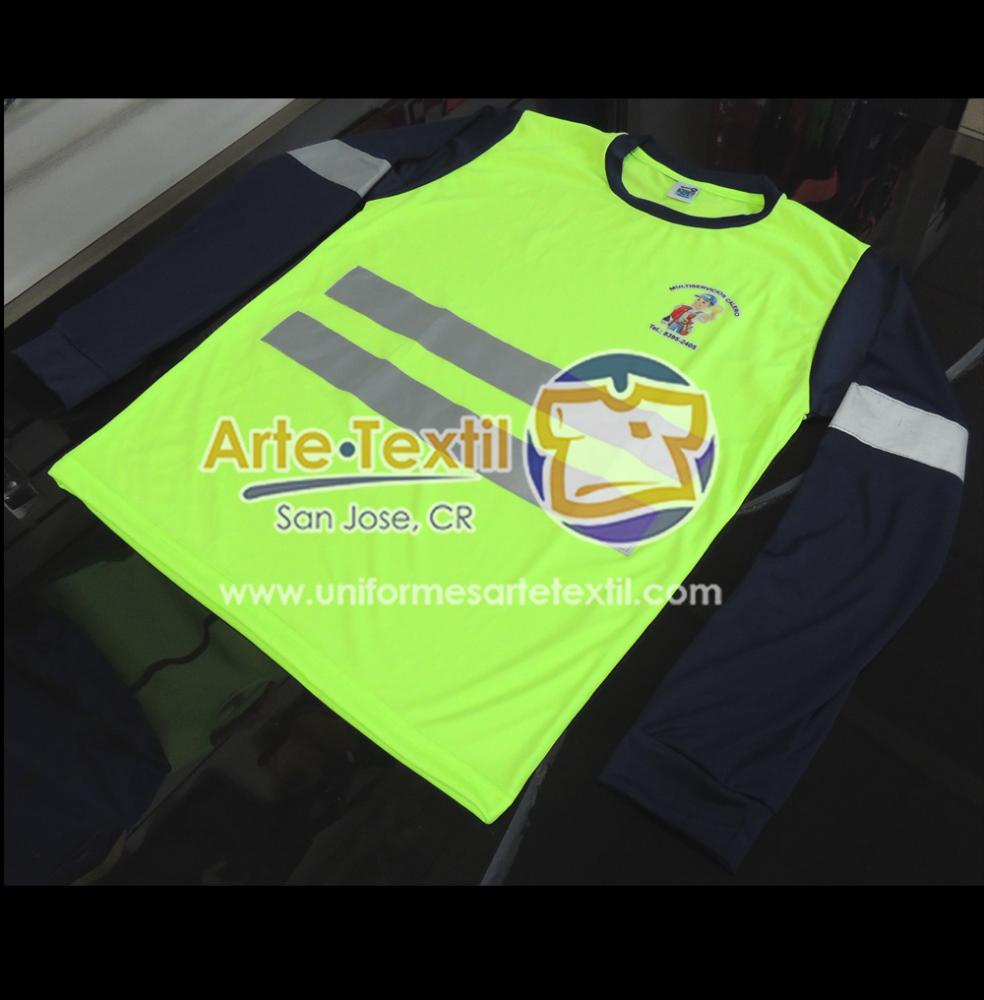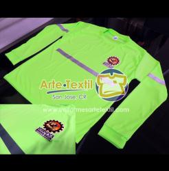 Producto código: 4252 Camiseta Dry Fit Cool Plus Azul Rey con 2 cintas reflectivas de tela cosidas Reflomax Industrial amarillo neón con plateado de 2 pulgadas, masculino cosidas, manga larga - en INVENTARIO |