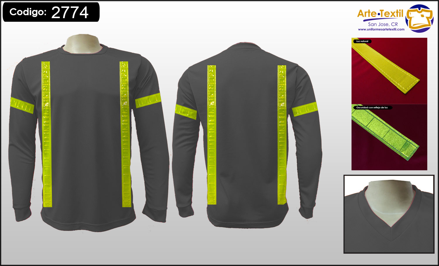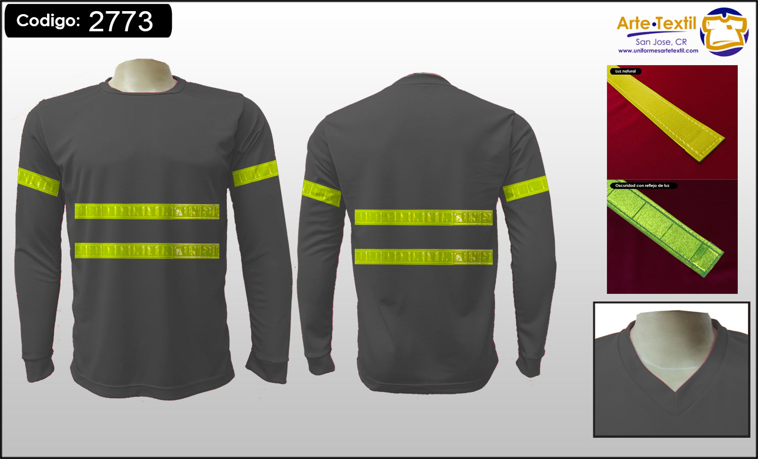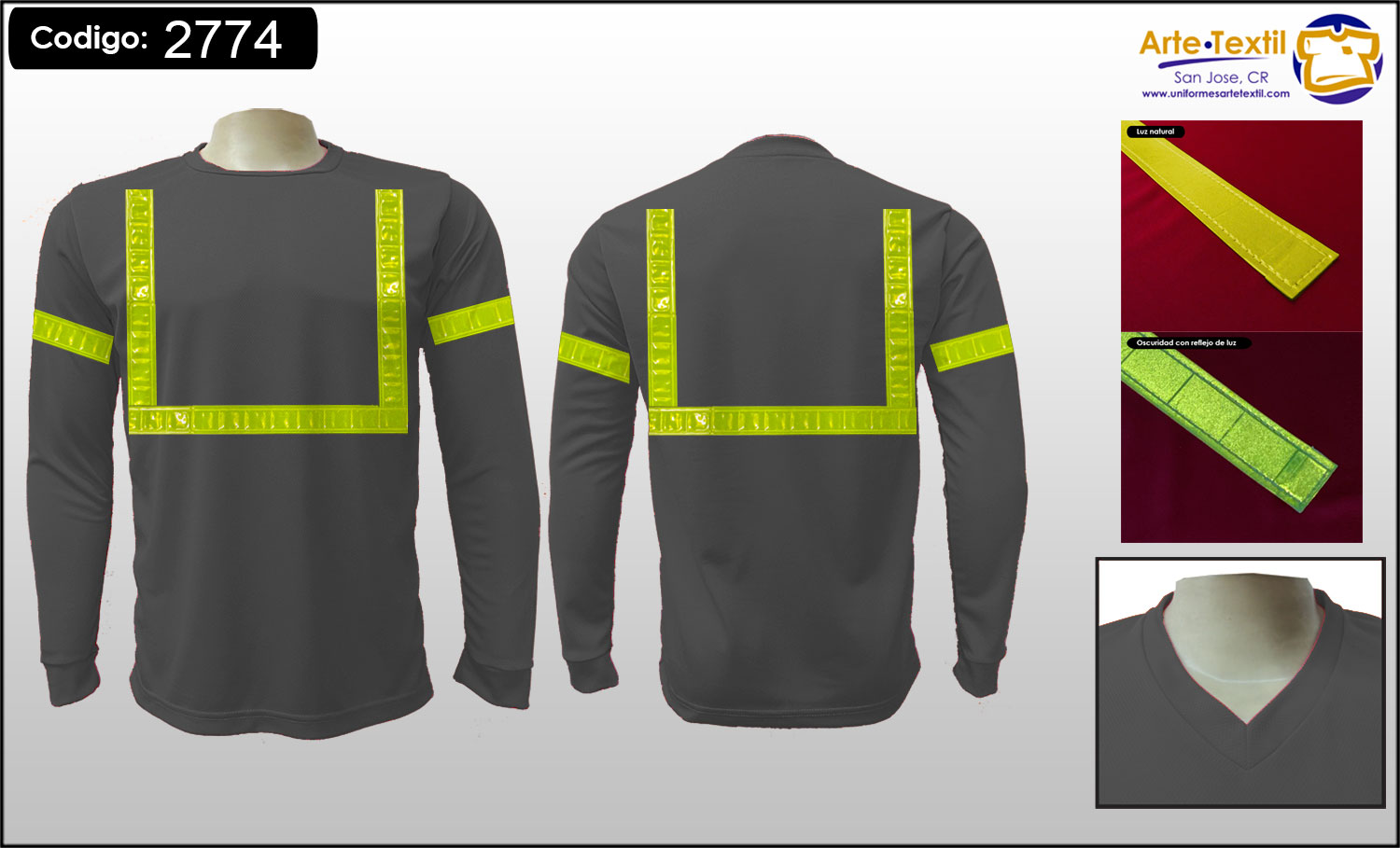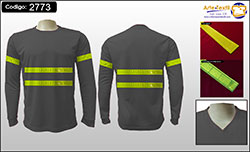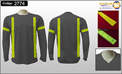 Producto código: 2773 Camiseta Dry Fit Cool Plus con 4 cinta reflectivas de tela cosidas amarillas plásticas horizontales de 1 pulgada cosidas, masculino, manga larga |