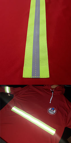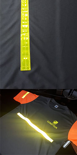 Producto código: 3787 Camiseta Dry Fit Cool Plus con 2 cinta reflectivas de tela cosidas Reflomax Industrial Grises horizontal de 1 pulgada, masculino cosidas, manga larga, con gorro de trabajo |