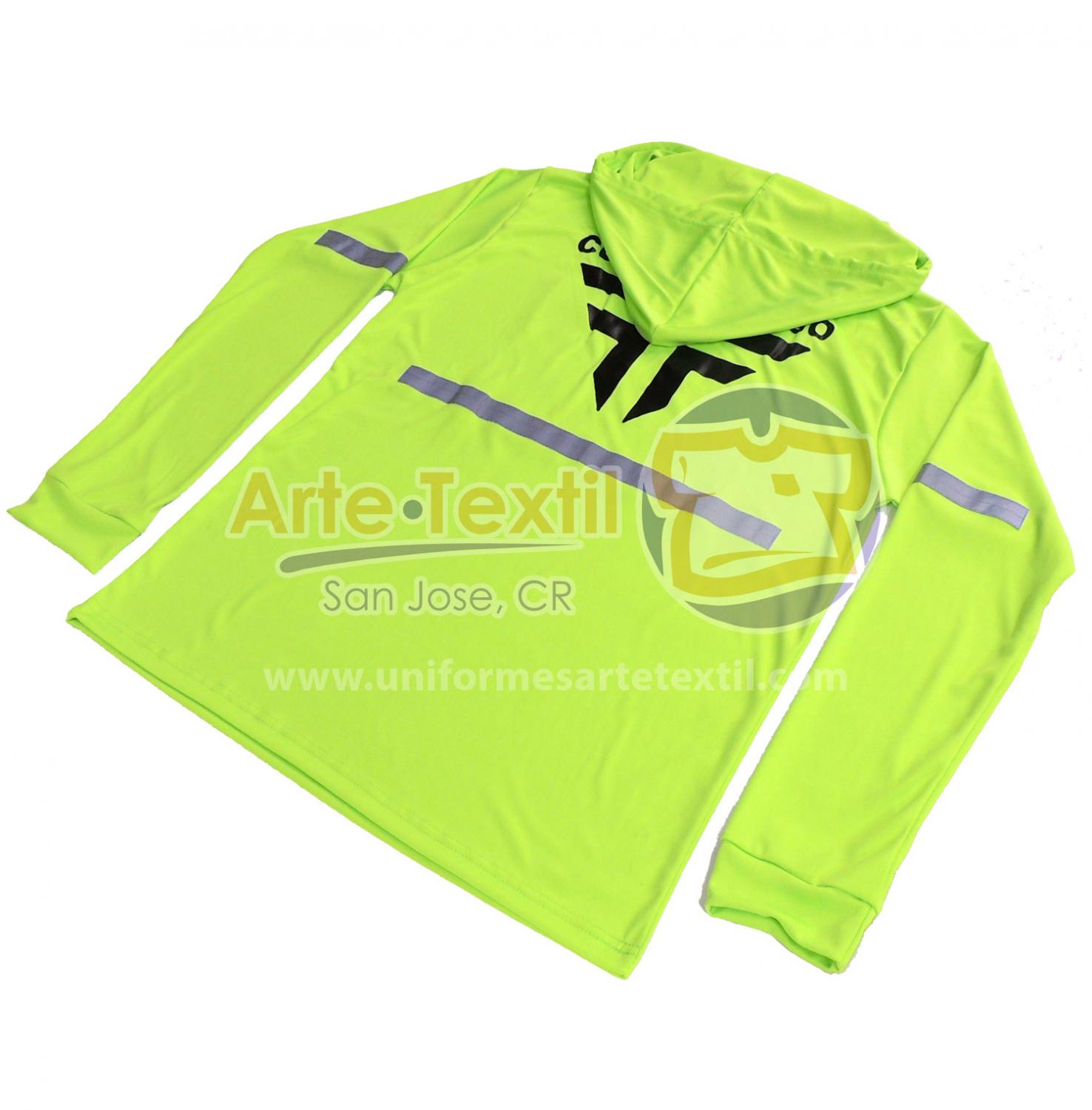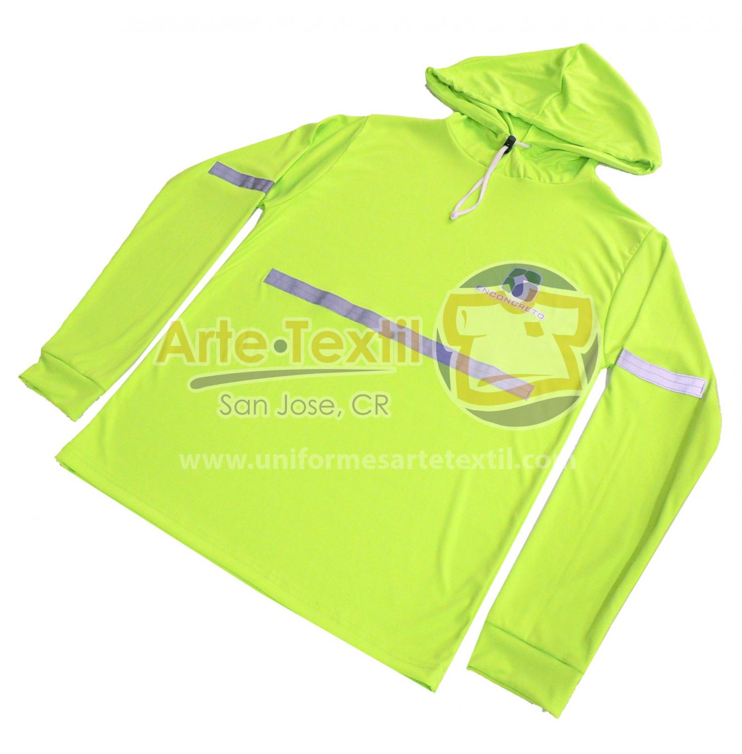 Producto código: 3788 Camiseta Dry Fit Cool Plus con 2 cinta reflectivas de tela cosidas amarillas plásticas horizontales de 1 pulgada cosidas, masculino, manga larga, con gorro de trabajo |