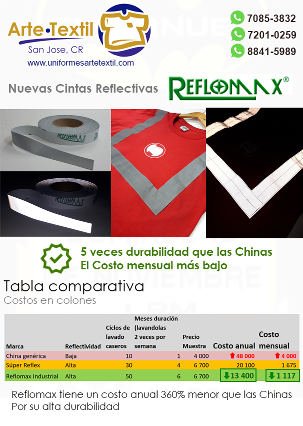 La ofrecemos únicamente para camisetas con cintas reflectivas porque es retardante de combustión, usada principalmente para labores donde se debe usar soldadura; las chispas de soldadura sí perforan de inmediato las telas sintéticas.