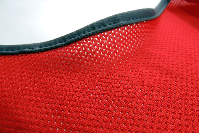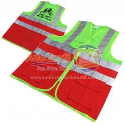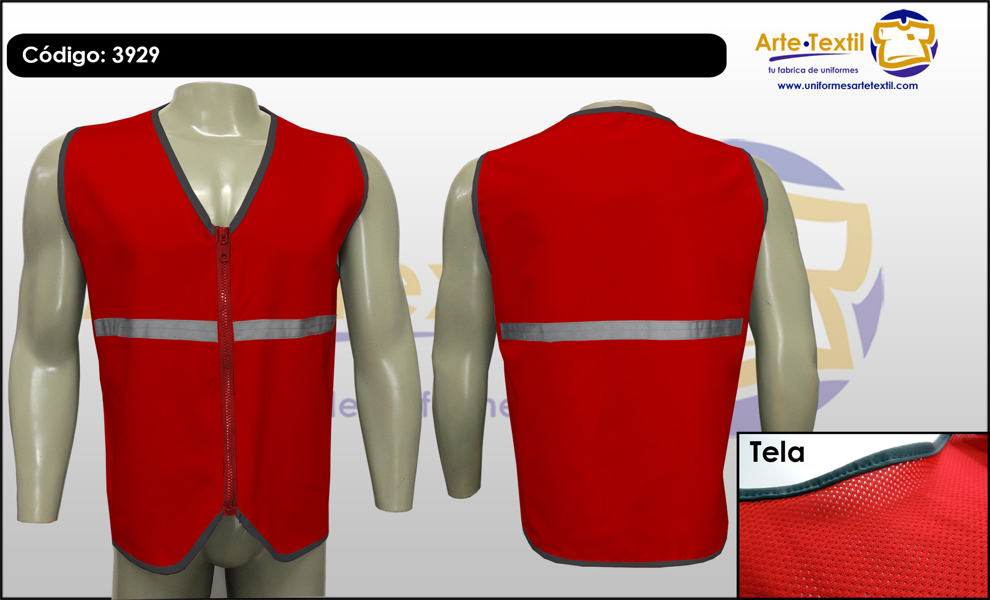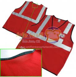 Producto código: 3929 Chaleco de trabajo, de tela: Dry Fit Malla con ribete 100% poliester color rojo - gris oscuro, con cierre frontal: zipper diente perro |