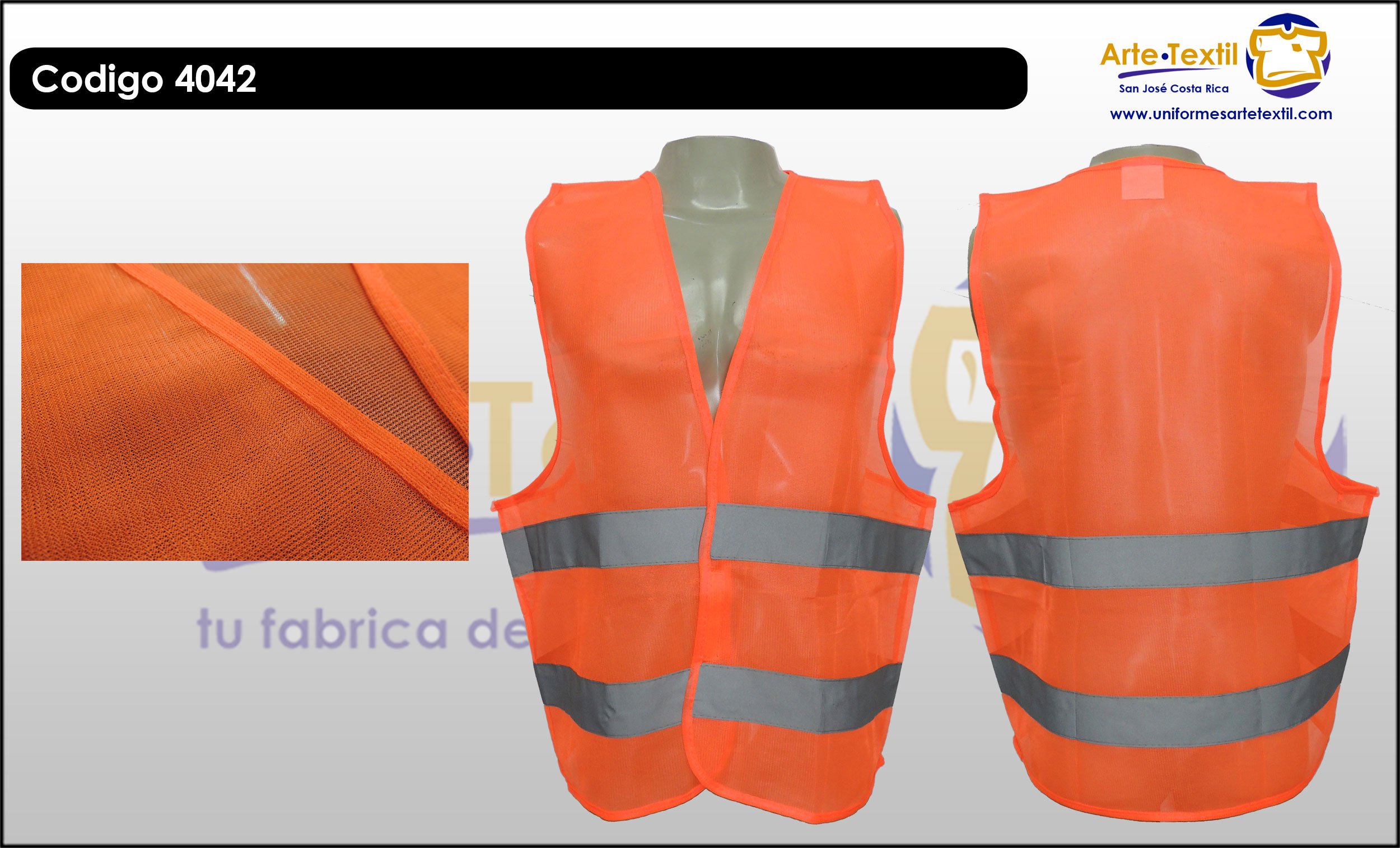 Producto código: 4042 Chaleco reflectivo calidad económica importado, Naranja Neón con 4 cintas reflectivas horizontales de 2 pulgadas, tela Malla gruesa, cierre con velcro, Talla L (única) - en inventario |