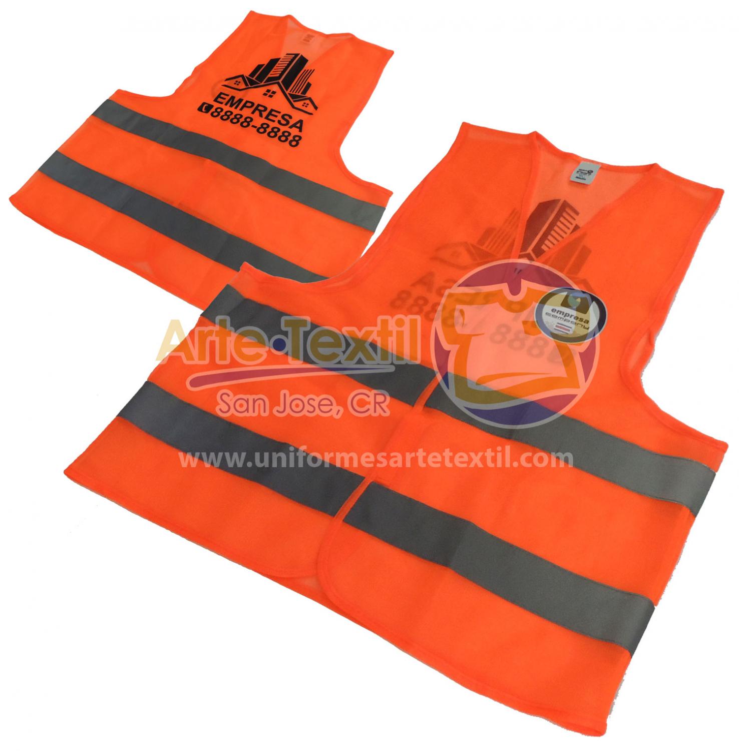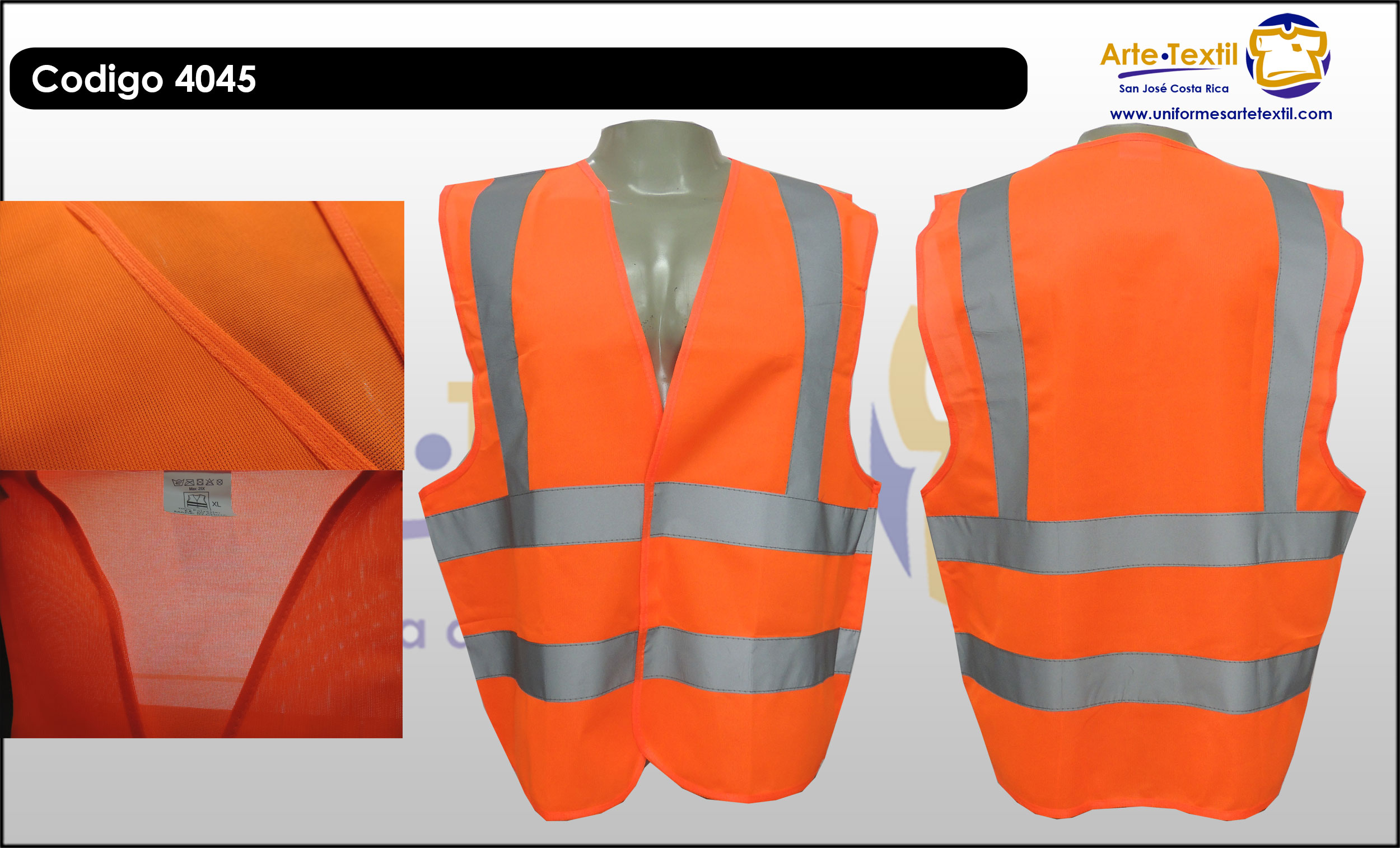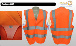 Producto código: 4045 Chaleco reflectivo calidad económica importado, naranja neón con 4 cintas horizontales y 4 verticales reflectivas grises de 2 pulgadas, tela malla Dry Fit, cierre con velcro, Talla XL (única) - en inventario |