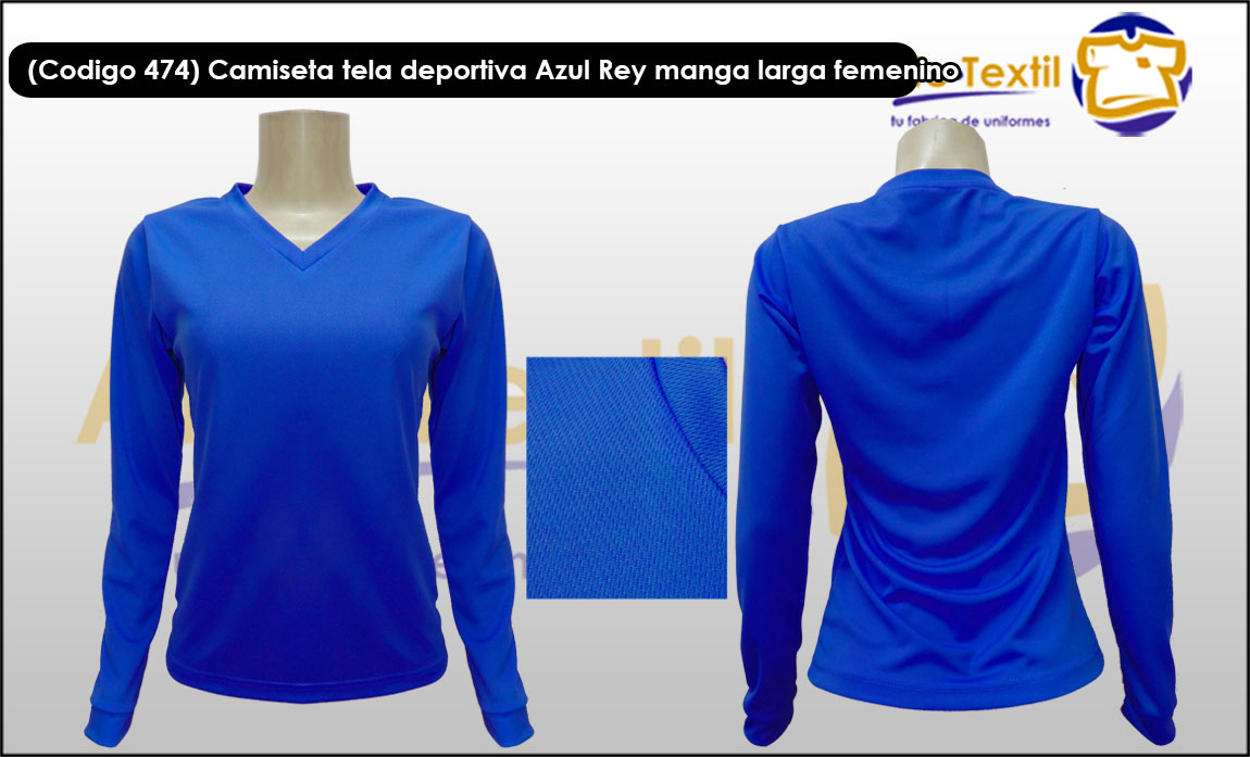 Producto código: 474 Camiseta tela deportiva Dry Fit JIK Azul Rey manga larga femenino |