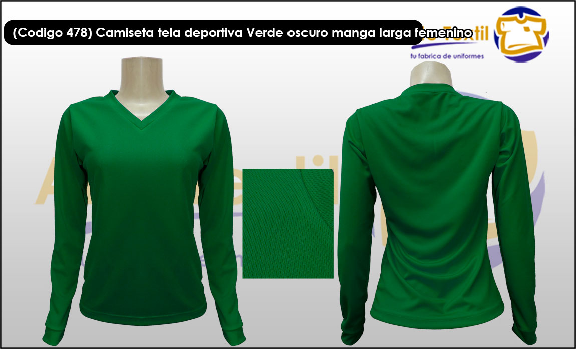 Producto código: 478 Camiseta tela deportiva Dry Fit JIK Verde oscuro manga larga femenino |