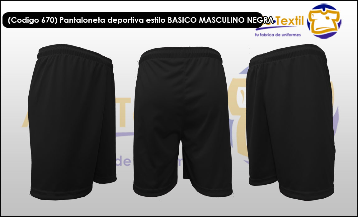 Producto código: 670 Pantaloneta deportiva tela Dry Fit Cool Plus, masculino, estilo básico, color negro