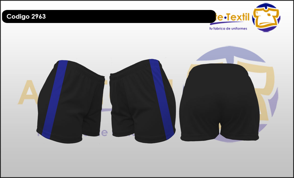 Producto código: 2963 Pantaloneta deportiva tela Dry Fit Cool Plus, femenino, estilo combinado, color negro con azul rey